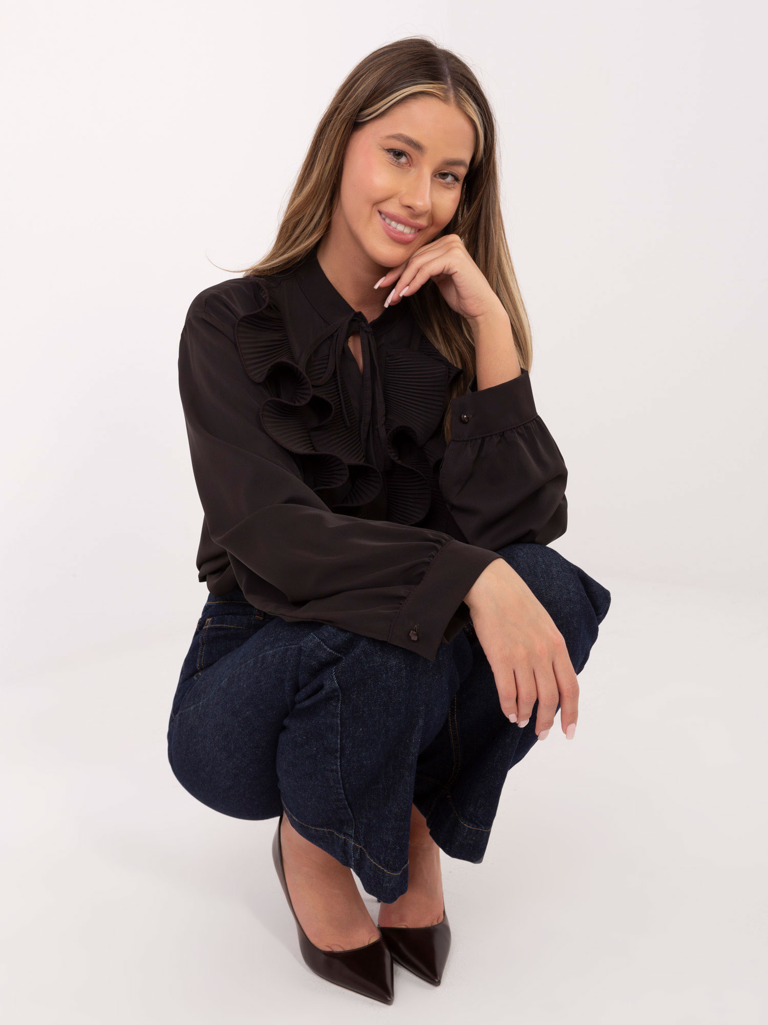 Modelis dėvi vieno dydžio dydį. Modelio matmenys: wzrost 176 cm, krūtinė 90 cm, juosmuo 62 cm, klubai 94 cm.