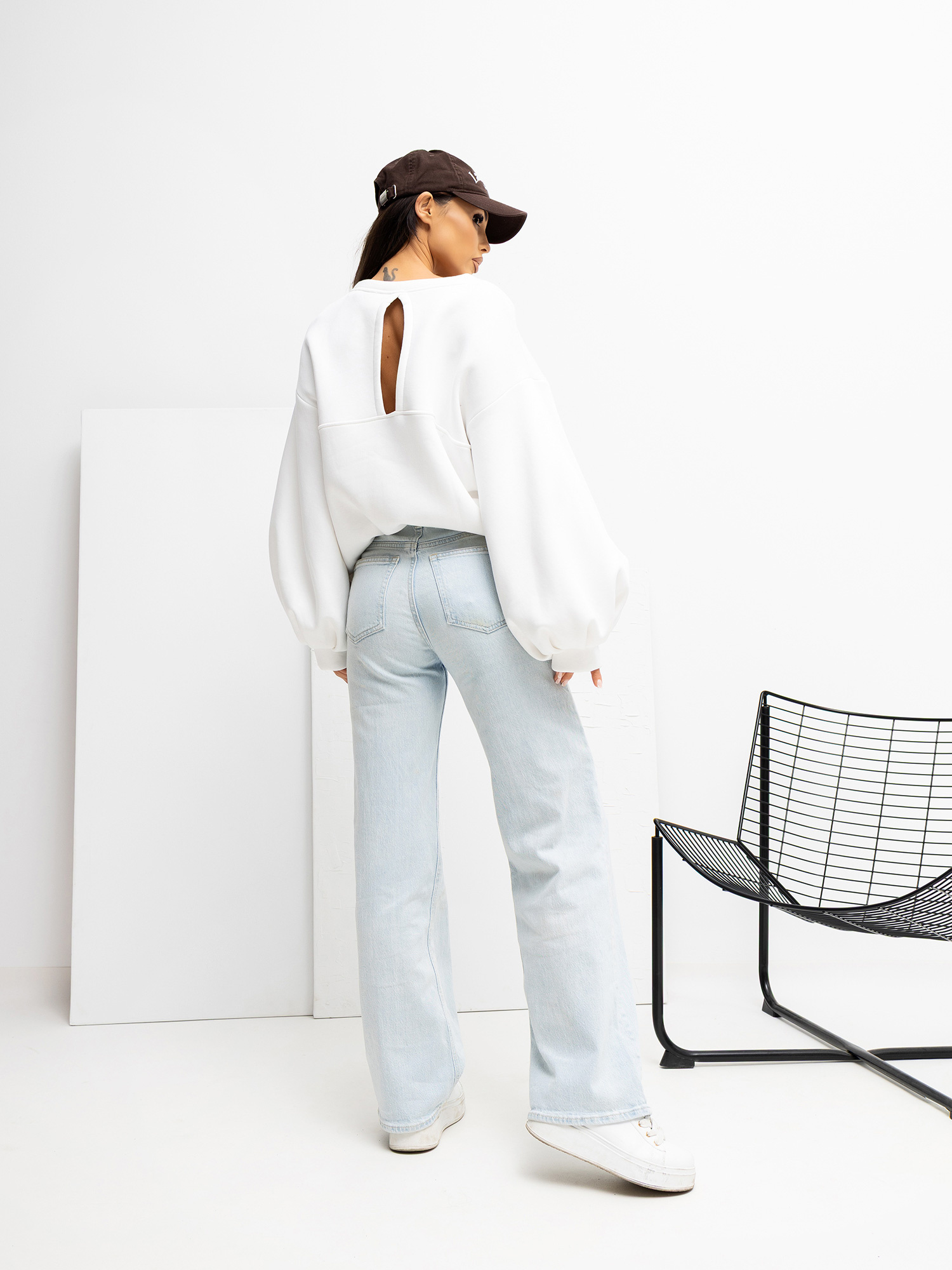 Vieno dydžio megztinio matmenys, matuojami plokščiai: plotis po pažastimis - 63 cm, bendras ilgis - 64 cm, plotis apačioje - 51 cm, rankovių ilgis - 71 cm (nuo siūlės).