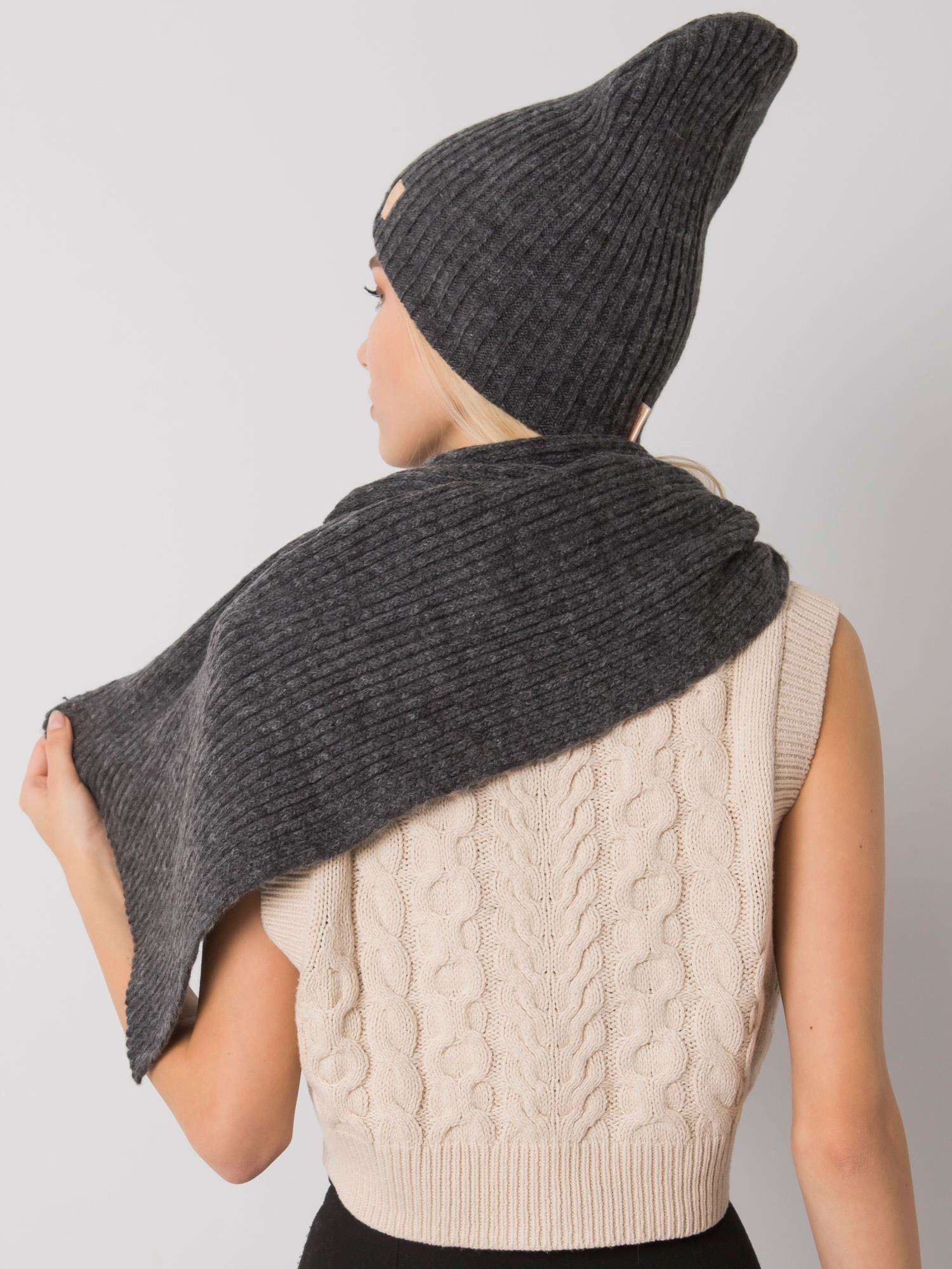 Tamsiai pilka RUE PARIS žieminės kepurės ir šaliko rinkinys lenkiška produkcija