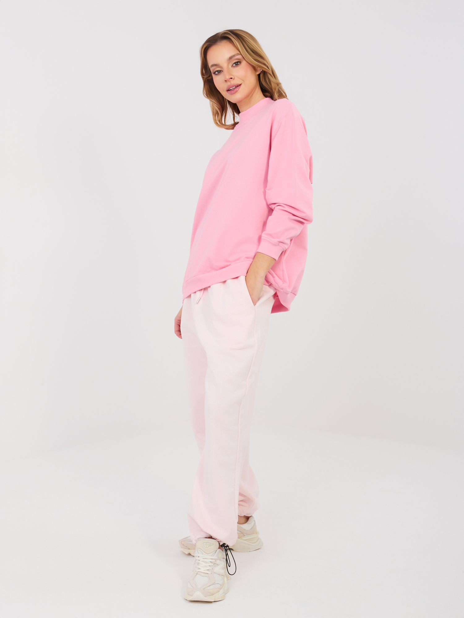 Modelis dėvi S dydį. Modelio matmenys: aukštis 68 cm, klubai 89 cm;
